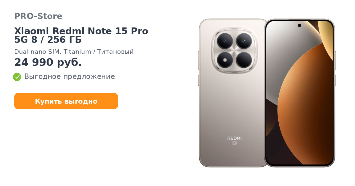 Смартфон Xiaomi Redmi Note 15 Pro 5G 8/256 ГБ, Dual nano SIM, Titanium/Титановый