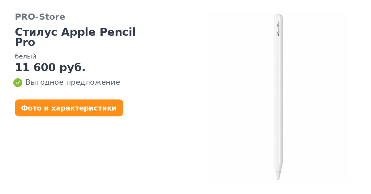 Стилус Apple Pencil Pro для Apple iPad белый предназначен для творческих людей, которые ценят точность и удобство при работе с планшетом. Этот стилус решает проблему неудобного и неточного управления: благодаря высокой чувствительности к нажатию и отличной отзывчивости он идеально подходит для рисования, заметок и редактирования фото и видео. Особенность модели заключается в поддержке обширного функционала Apple Pencil, что позволяет использовать все возможности iPad без ограничений. Это устройство станет отличным помощником для дизайнеров, иллюстраторов, студентов и всех, кто работает с графикой. Почему стоит выбрать Stilus Apple Pencil Pro?Из-за высокого качества изготовления, комфорта, эргономичной формы и точности управления. Вы можете использовать его дома, в офисе или в учебном заведении благодаря простому подключению и надежной беспроводной связи. Материал корпуса прочный, но легкий, что обеспечивает длительное использование без усталости. Рисование или работа с документами будут максимально похожи на естественные действия. Стилус поддерживает функцию наклона и чувствительность к давлению, что позволяет создавать объемные линии и различные оттенки. Интуитивное управление способствует продуктивности и творческому процессу. Кроме того, он полностью совместим с Apple iPad, обеспечивая стабильность и точность функционала. Этот аксессуар открывает новые возможности для креативных задач, делает работу на планшете удобной и эффективной — идеальное решение для тех, кто хочет раскрыть свой потенциал с помощью современных технологий. Пользуйтесь стильным и современным устройством, которое увеличит ваши возможности в цифровом творчестве и работе с Apple iPad.