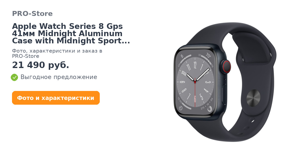 Умные часы Apple Watch Series 8 Gps 41мм Midnight Aluminum Case with Midnight Sport Band (размер M/L)