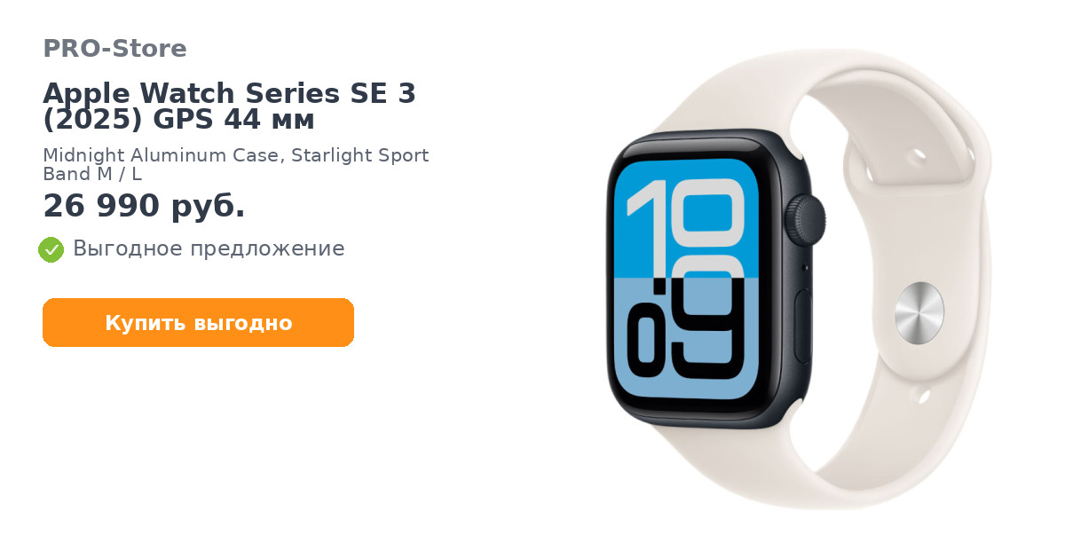 С Умные часы Apple Watch Series SE 3 (2025) GPS 44 мм, Midnight Aluminum Case, Starlight Sport Band M/L покупают