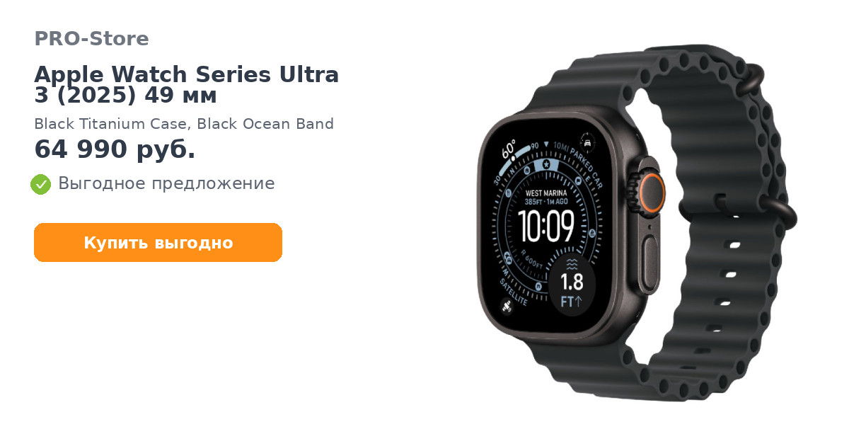 Надёжный титановый корпусApple Watch Ultra 3 оснащены корпусом из авиационного титана — лёгкого, прочного и устойчивого к царапинам и ударам. Часы выдерживают экстремальные условия, будь то поход в горы, интенсивные тренировки или длительные путешествия. Улучшенная водозащита WR100 и защита от пыли делают их надёжным спутником даже в сложных условиях.