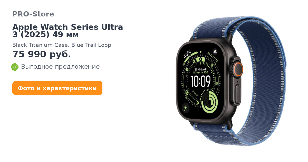 Умные часы Apple Watch Series Ultra 3 (2025) 49 мм, Black Titanium Case, Blue Trail Loop
