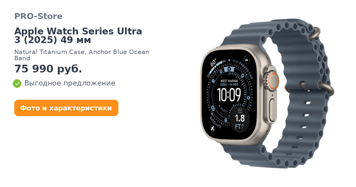 Надёжный титановый корпусApple Watch Ultra 3 оснащены корпусом из авиационного титана — лёгкого, прочного и устойчивого к царапинам и ударам. Часы выдерживают экстремальные условия, будь то поход в горы, интенсивные тренировки или длительные путешествия. Улучшенная водозащита WR100 и защита от пыли делают их надёжным спутником даже в сложных условиях.