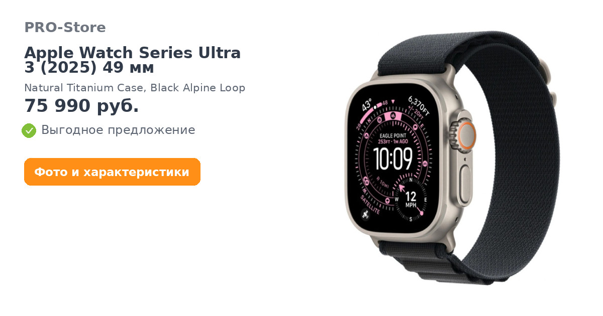Умные часы Apple Watch Series Ultra 3 (2025) 49 мм, Natural Titanium Case, Black Alpine Loop