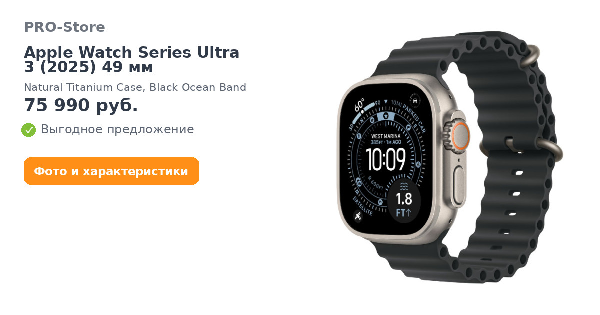 Надёжный титановый корпусApple Watch Ultra 3 оснащены корпусом из авиационного титана — лёгкого, прочного и устойчивого к царапинам и ударам. Часы выдерживают экстремальные условия, будь то поход в горы, интенсивные тренировки или длительные путешествия. Улучшенная водозащита WR100 и защита от пыли делают их надёжным спутником даже в сложных условиях.