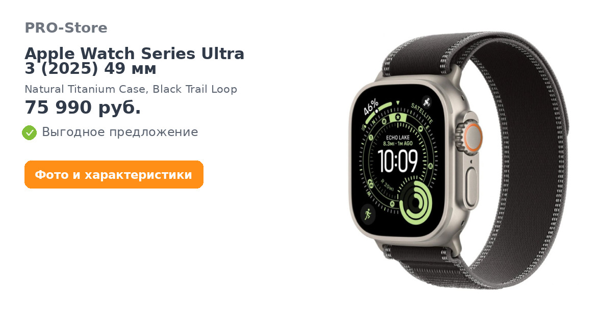 Умные часы Apple Watch Series Ultra 3 (2025) 49 мм, Natural Titanium Case, Black Trail Loop