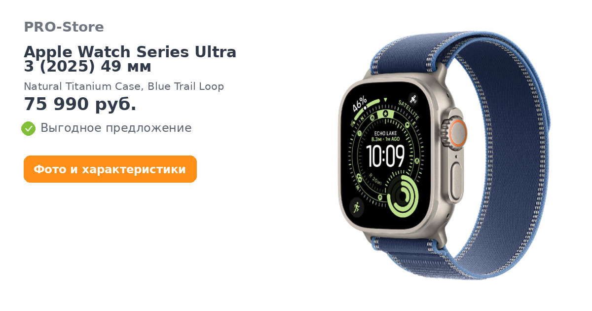 Умные часы Apple Watch Series Ultra 3 (2025) 49 мм, Natural Titanium Case, Blue Trail Loop