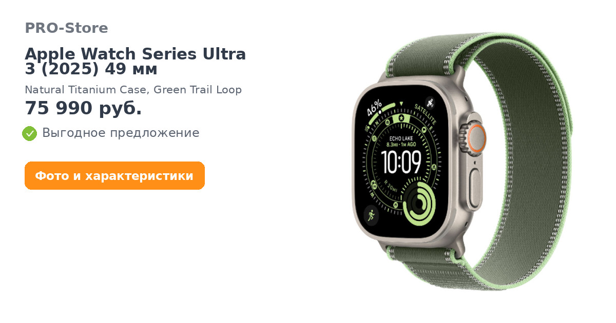 Умные часы Apple Watch Series Ultra 3 (2025) 49 мм, Natural Titanium Case, Green Trail Loop