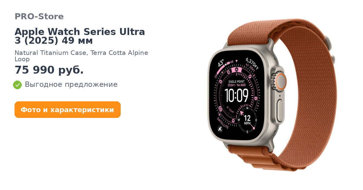 Умные часы Apple Watch Series Ultra 3 (2025) 49 мм, Natural Titanium Case, Terra Cotta Alpine Loop