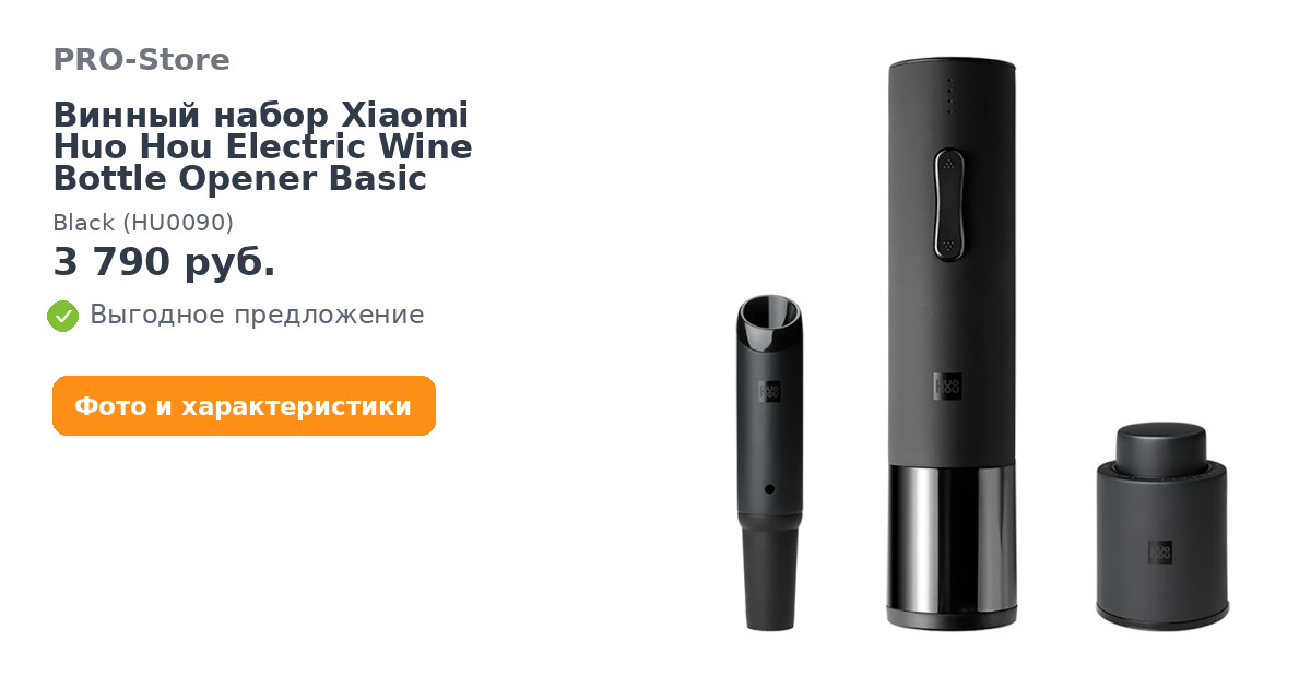 Винный набор Xiaomi Huo Hou Electric Wine Bottle Opener Basic Black (HU0090)