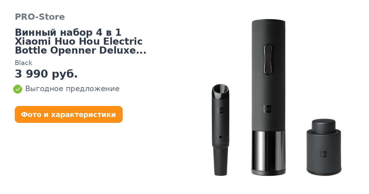 Винный набор 4 в 1 Xiaomi Huo Hou Electric Bottle Openner Deluxe Set (HU0090) Black