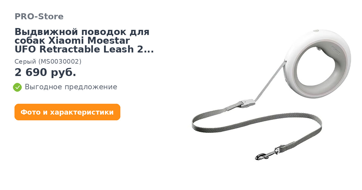 Поводок для собак Xiaomi MOESTAR UFO Retractable Leash 2Поводок длиной 3 м выдерживает нагрузку до 90 г. Трос высокой упругости можно в любой момент заблокировать. Удобная ручка, встроенный фонарик и подсветка делают использование поводка намного удобнее. Получите удовольствие от прогулки с любимым питомцем!